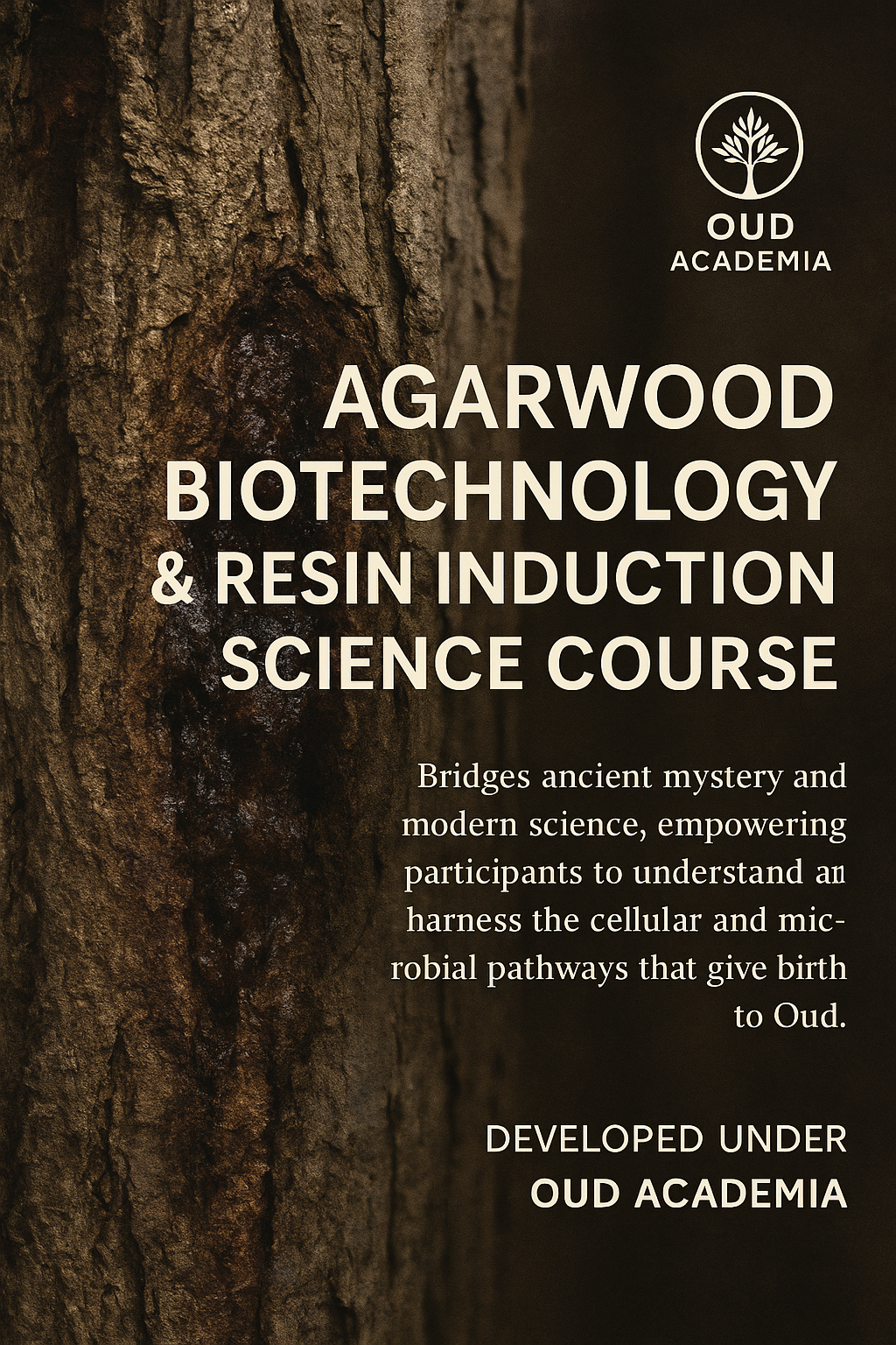 The Agarwood Biotechnology & Resin Induction Science Course bridges ancient mystery and modern science, empowering participants to understand and harness the cellular and microbial pathways that give birth to Oud. Developed under Oud Academia, this course unites biotech innovation, mycology, and ecological stewardship, shaping a new generation of agarwood scientists dedicated to sustainable and ethical resin formation.